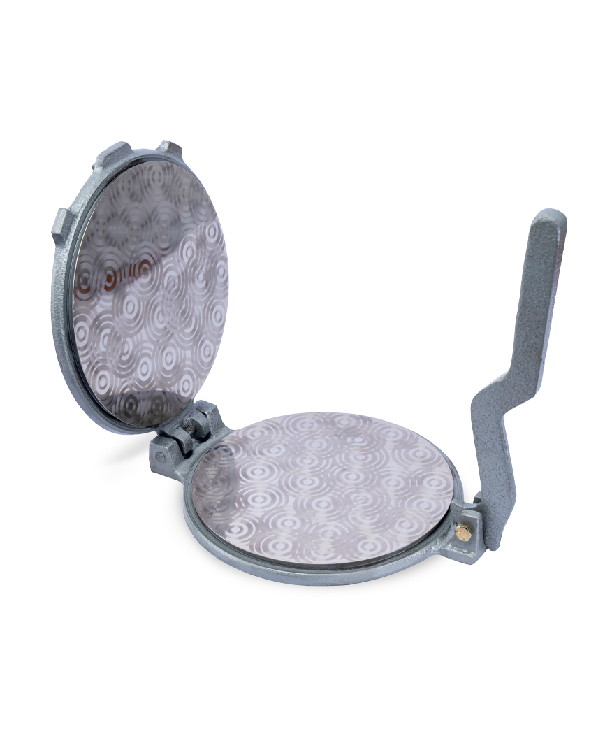 A heavy-duty chapathi press crafted with a solid cast iron body for strength and durability, paired with a smooth stainless steel inner plate for clean, hygienic pressing. Designed to help you shape perfectly round chapathis with minimum effort.