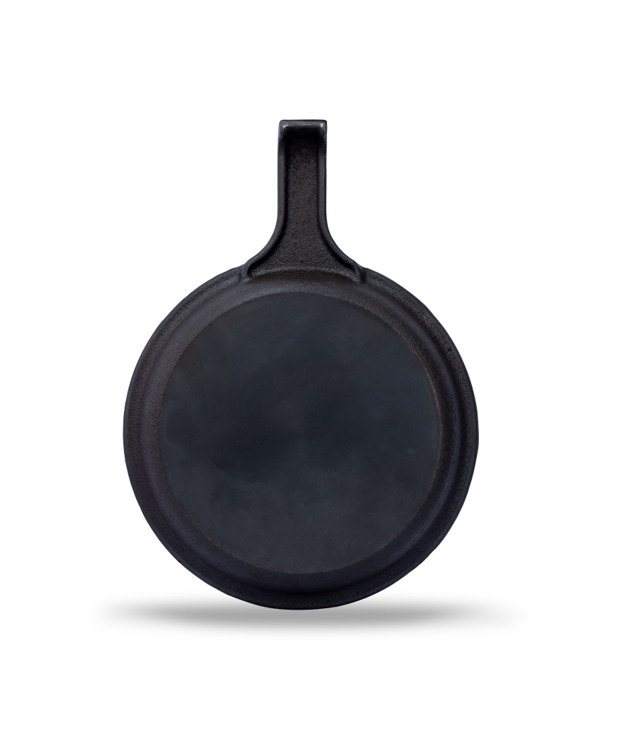 A traditionally crafted cast iron phulka pan with strategically placed holes that allow direct flame contact—helping rotis puff beautifully, just like on an open flame.